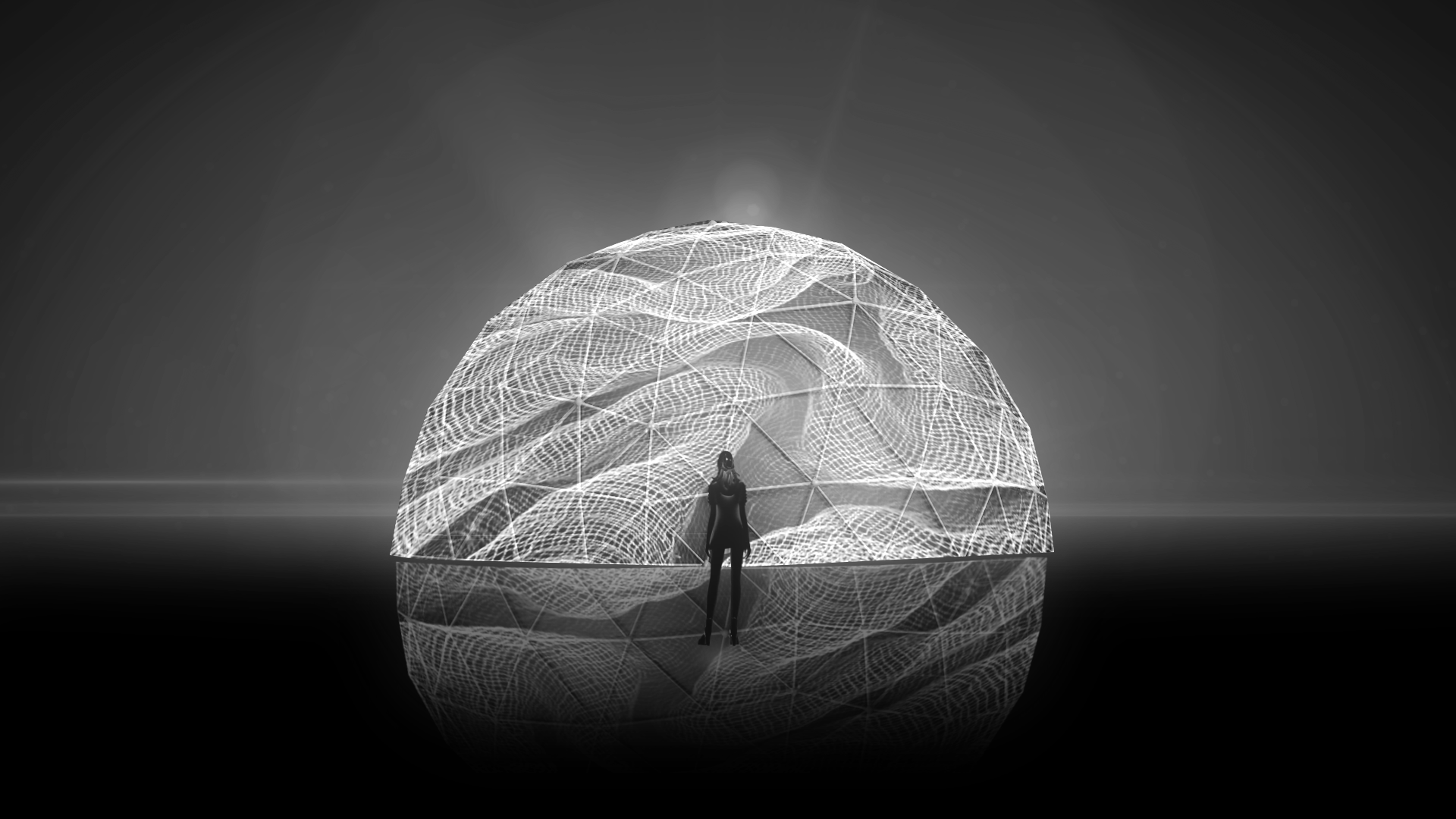 AVA inspired by the iconic work of Buckminster Fuller, AVA V2 was created by using projection mapping on a hemisphere structure made of semi transparent fabric, requiring the installation to have six projectors.